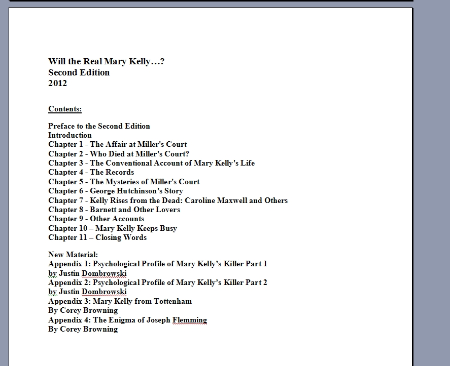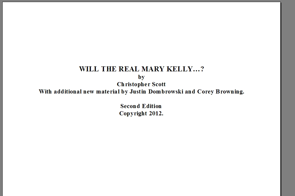 Update on "Will the Real Mary Kelly...? Second Edition"