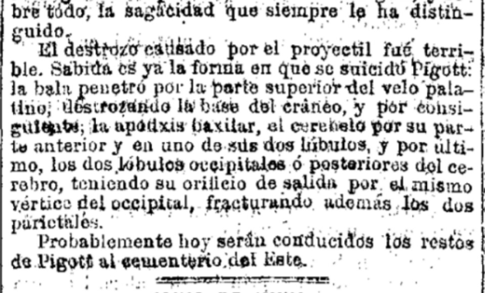 el cadaver de Pigott ha sido trasladado al deposito judicial del Sur, donde actualmente se encuentra.