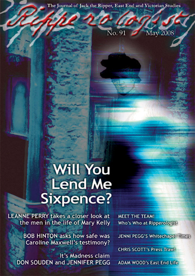 In the first of a two articles on Mary Kelly, Leanne Perry, in Will You Lend Me Sixpence?, takes a closer look at the men in Mary's life. Bob Hinton then asks how safe was Caroline Maxwell’s testimony? in Maxwell Under the Microscope.
