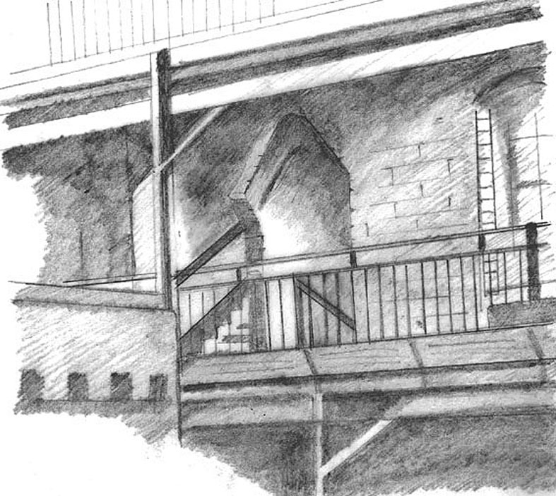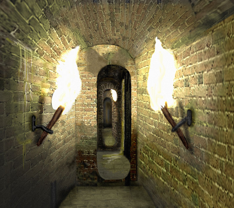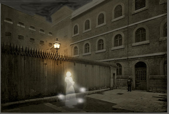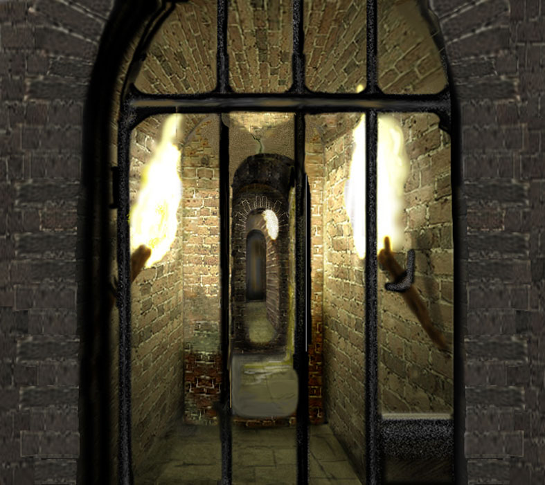 The first two of paintings of the passageways inside the old Clerkenwell Prison