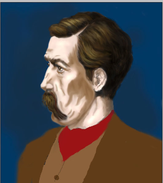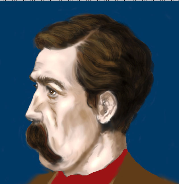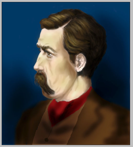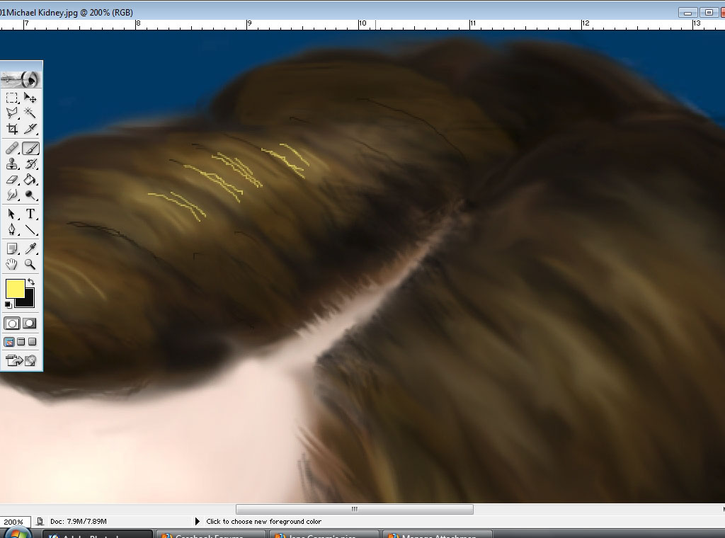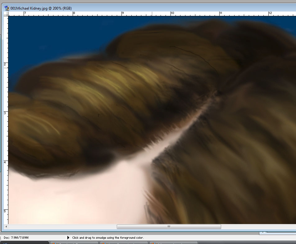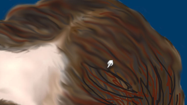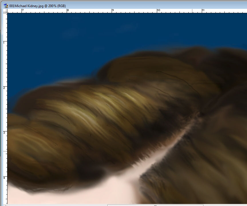 Hair is a bit of a devil to get the hang of, but once you suss it out, it's not too hard. Have a look at anyone's hair and you'll see that it's built up of quite a few different colours. I'm looking at my daughter Melissa's and she's got an underlying very dark brown, which is almost black. Never use pure black on a computer generated image or a real oil painting for that matter, except on the pupil of the eye, because it's disastrous for all sorts of reasons.