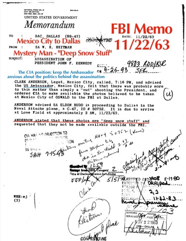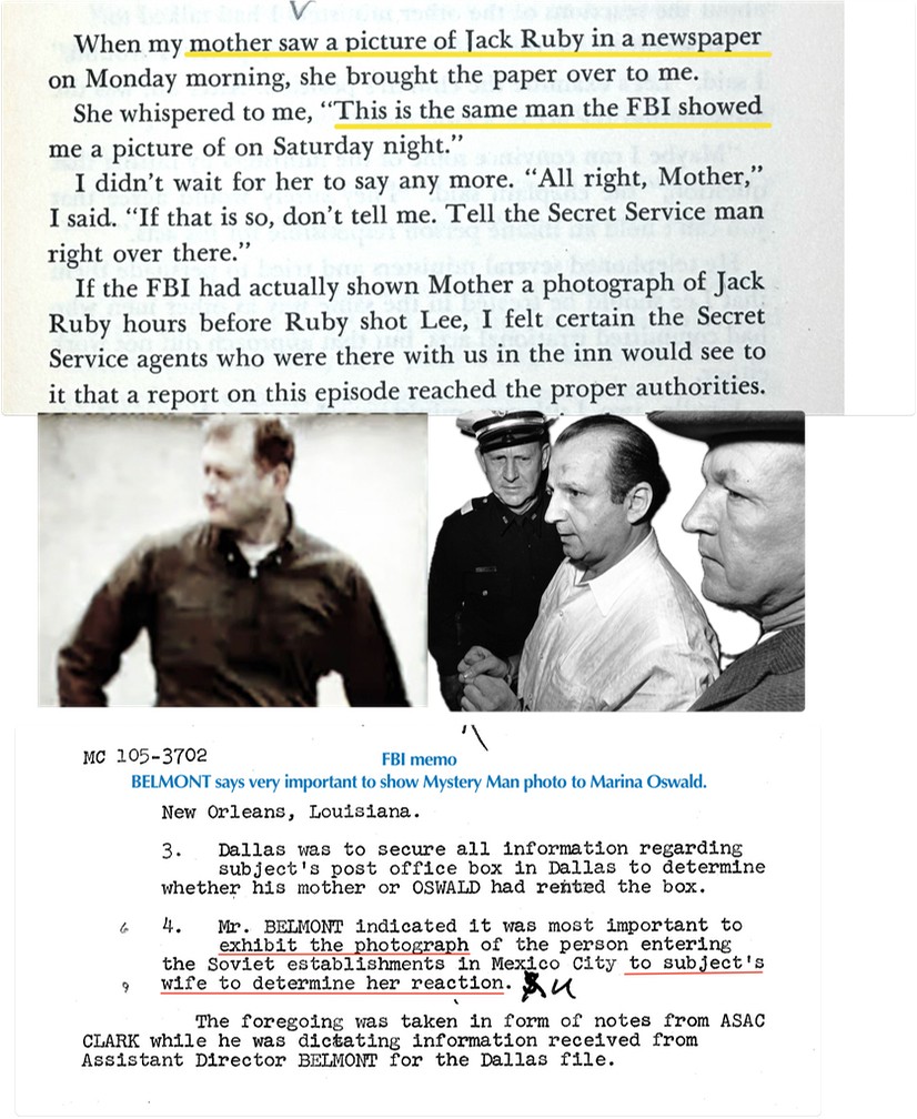 Alan Belmont of FBI had instructed Dallas FBI to show photo of the Mystery Man to Marina Oswald.The image was shown to Marguerite Oswald. After Jack Ruby murdered her son, Marguerite Oswald remembered the FBI photo and insisted the Mystery Man was Jack Ruby. The search for the mystery man is a fascinating excursion into counter-intelligence. It is a Mexico City story. Not a Dallas story. When I introduced the concept of the Mystery Man, FIVER commented that it is likely a wrong photo was sent; a human error made by a CIA “bureaucrat.”