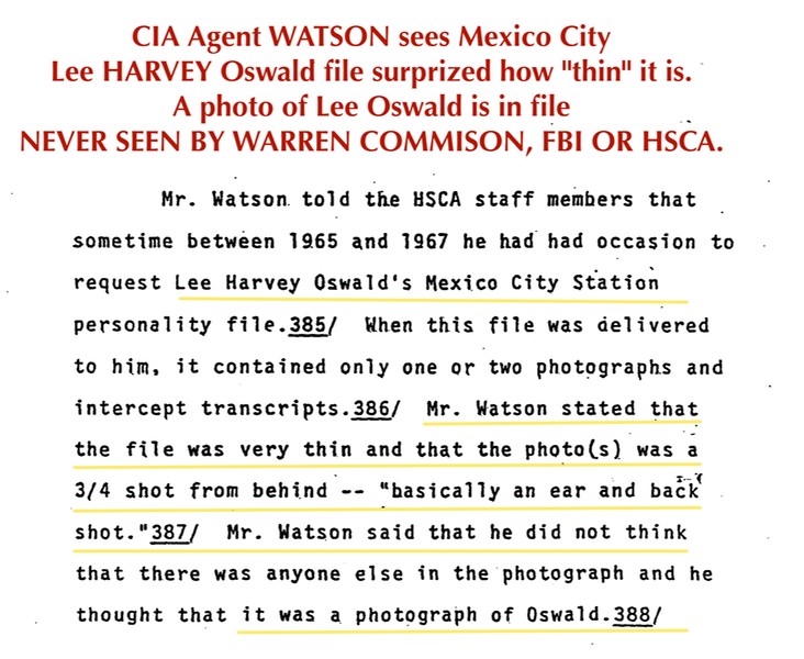 CIA officer Watson, also saw a Oswald’s 201 file folder with photo of the true Lee Harvey Oswald in Mexico City. Watson was surprised the file was “thin”.