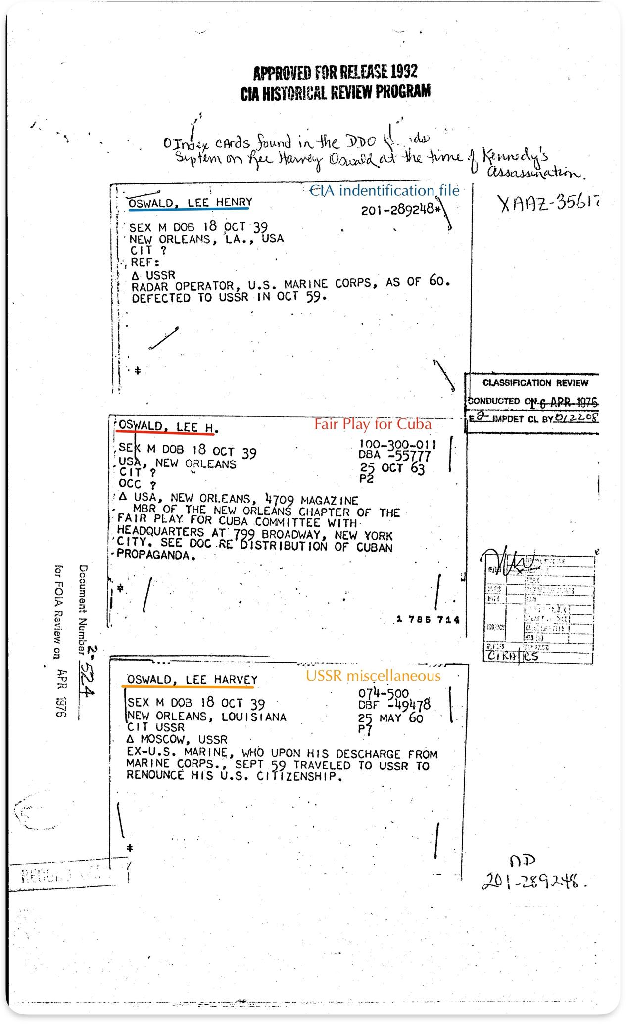Lee Harvey OSWALD, the defector who denounced America and became citizen of USSR! “CIT” is citizenship. Cit is unknown for H. & Henry.