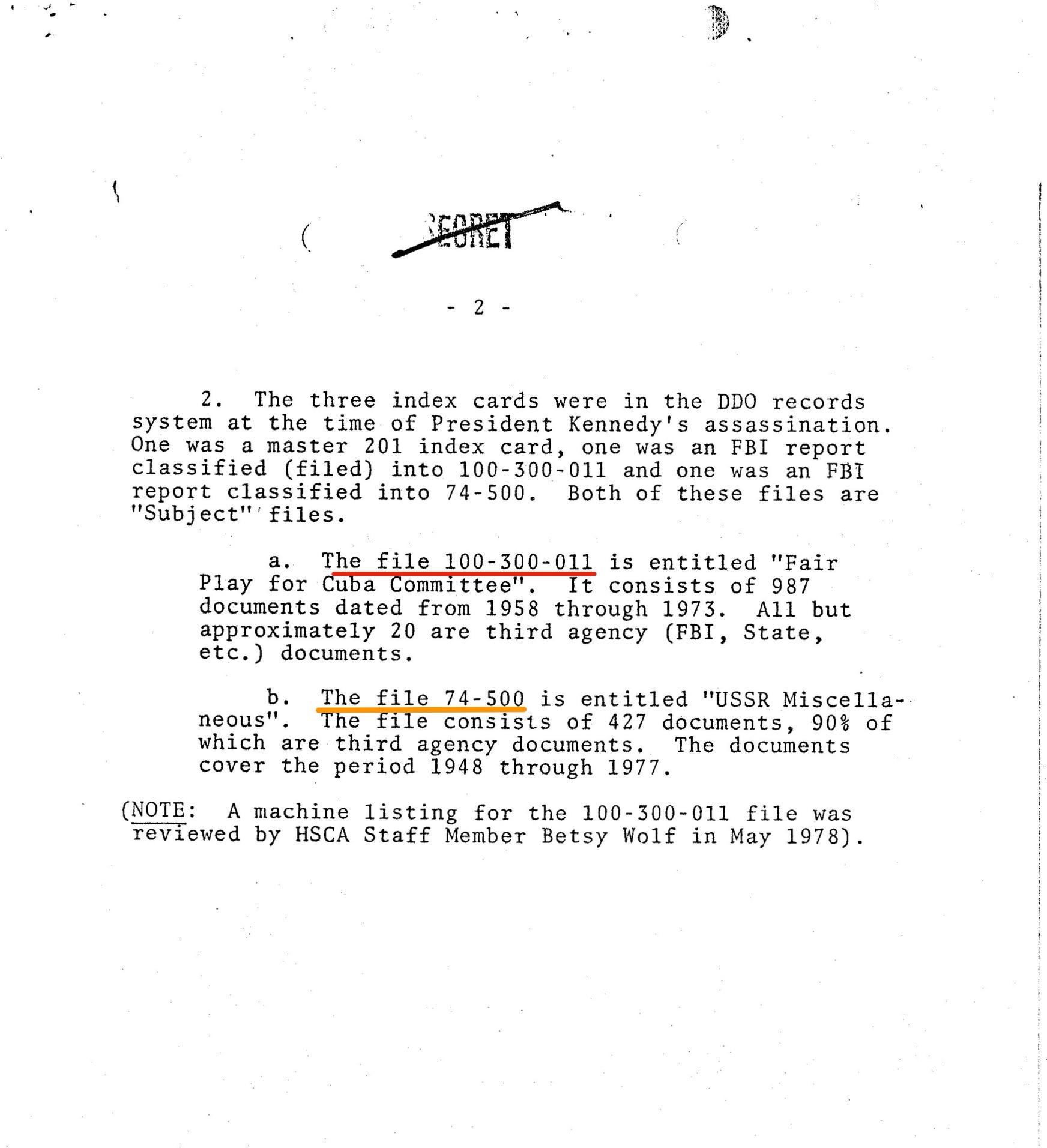 On Nov 22nd 1963 Richard Helms Department of Plans had three “cards” at his desk.