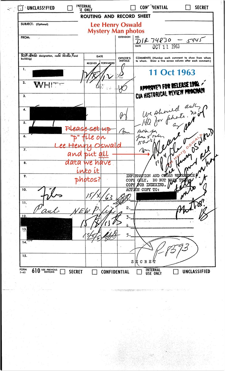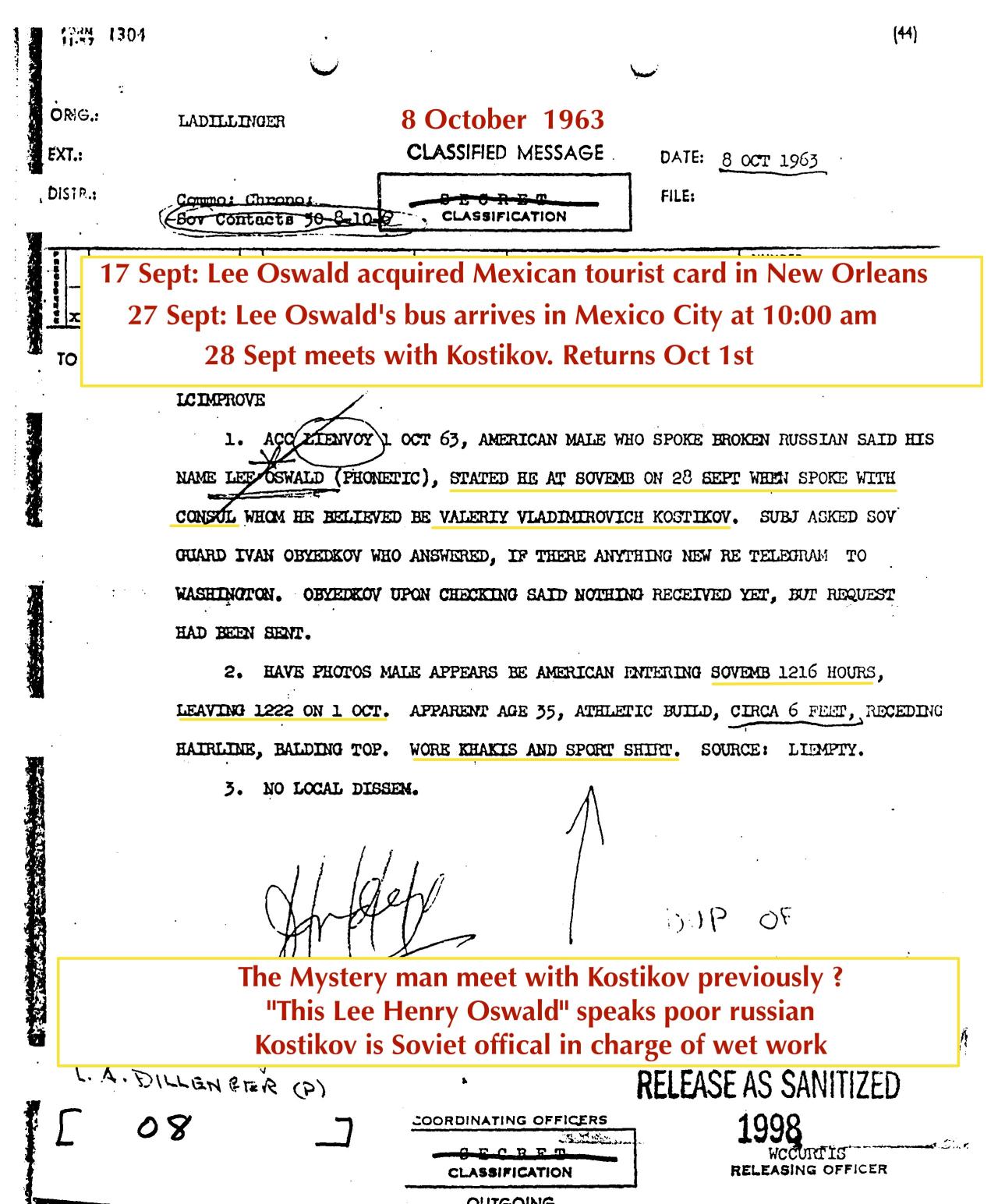 Win Scott sends a memo discussing the Mystery Man. Notice this HENRY Oswald memo is very Russia focused. Meeting with Kostikov, supposedly he is from Dept 13, involved in the wet affairs on Oct 1st.