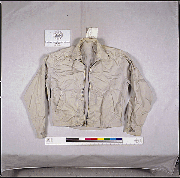 “Oswald was last seen cutting through a parking lot behind a Texaco Service station two blocks from the shooting scene. A gray zipper jacket was found there by police​.”