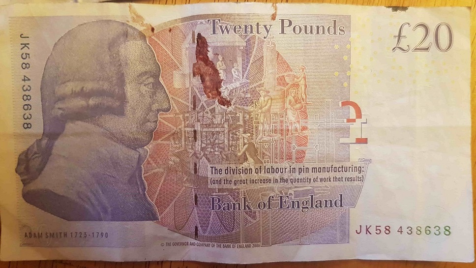 I recall we were talking about blood on a bank note and you quickly put up a photograph of a £50 note with blood on it from the ‘£1000’ in your pocket! As if anyone would believe the million to one chance example in your pocket! Obviously a £50 note that you smeared a bit of ketchup on?
