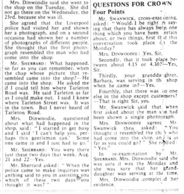 1. You will notice Sherrard refers to the visitor as “the chap whose picture that resembled” rather than Hanratty. So Swanwick is repeating the phrase already used when he asks: “You thought it resembled the chap who had come into the shop, and [that] is as far as you could go?”