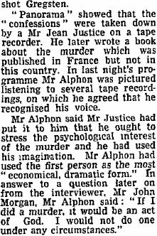 I remember reading (it may have been in Woffinden's book, which I haven't got to hand) something to the effect that Michael Gregsten had some kind of feeling that maybe he should be dead. If this is true (Gregsten it seems suffered from bouts of depression from time to time) I wonder if he took out life insurance cover ? I don't believe for one moment that Janet Gregsten had anything to do with her husband's murder, but maybe a very interested 3rd party (watching the unfolding marital situation of the Gregsten's) did.