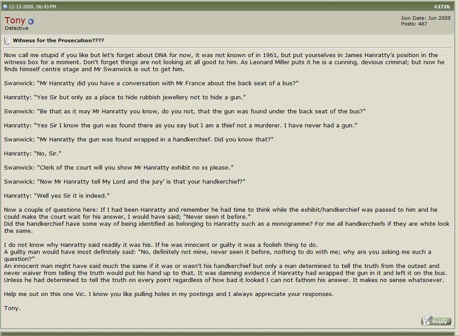 Tony comes across in his posts as a decent, humorous and honest person. I hardly think he would have invented the Hanratty/Swanwick exchange.