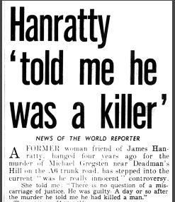 A former woman friend of James Hanratty, hanged four years ago for the murder of Michael Gregsten near Deadman’s Hill on the A6 trunk road, has stepped into the recent ‘was he really innocent?’ controversy.