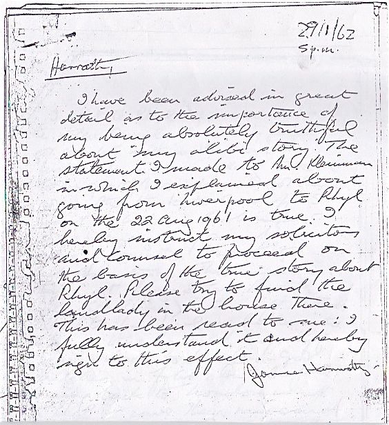 Here is a copy of Hanratty"s dictated letter to his solicitor of 29th january 1962: