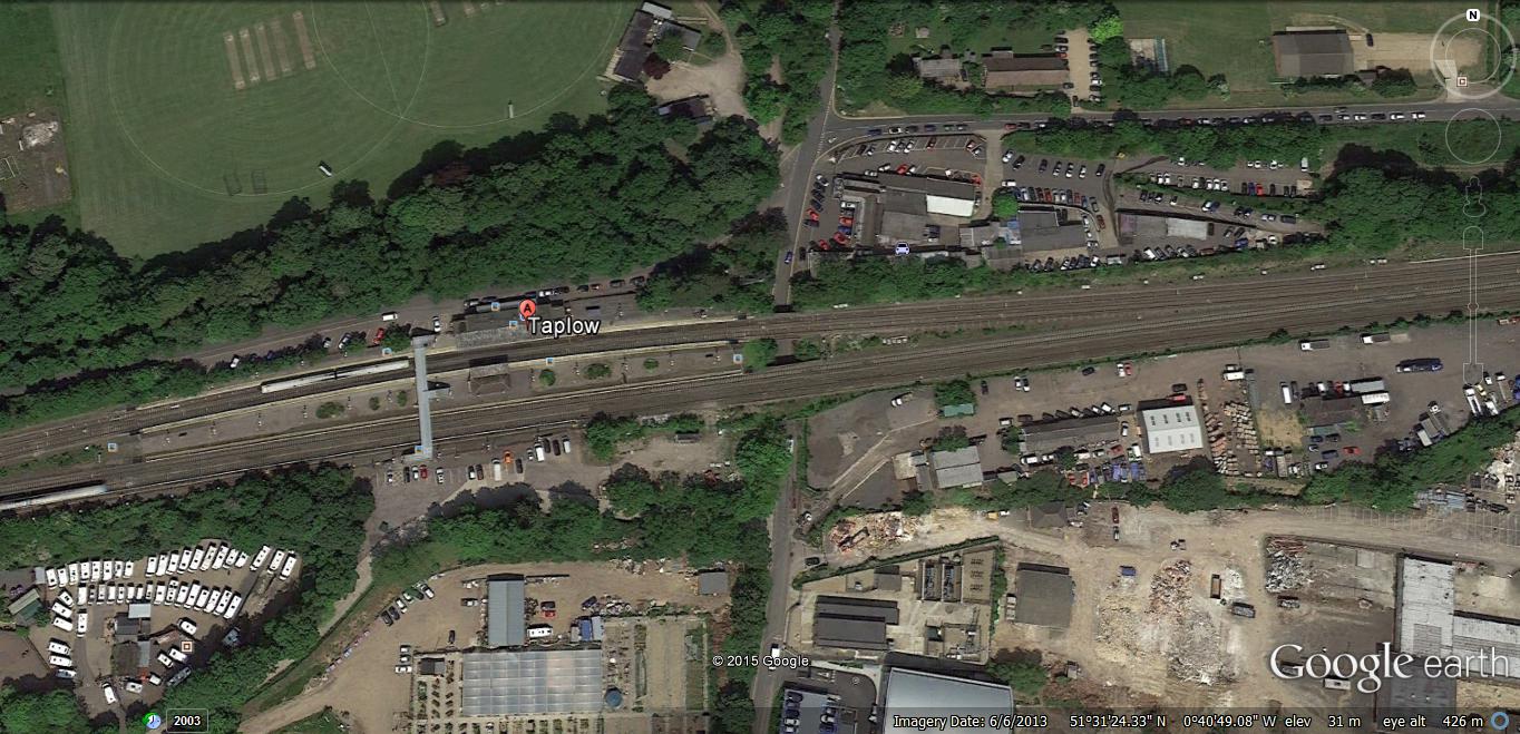 First try at posting an image... Taplow, location of old station Inn. Note GWR railway bridge over A4. Embankment, approximately 28 feet high, running at acute angle behind car dealership and shell station, where old pub was, obliterating any view towards Dorney Reach.