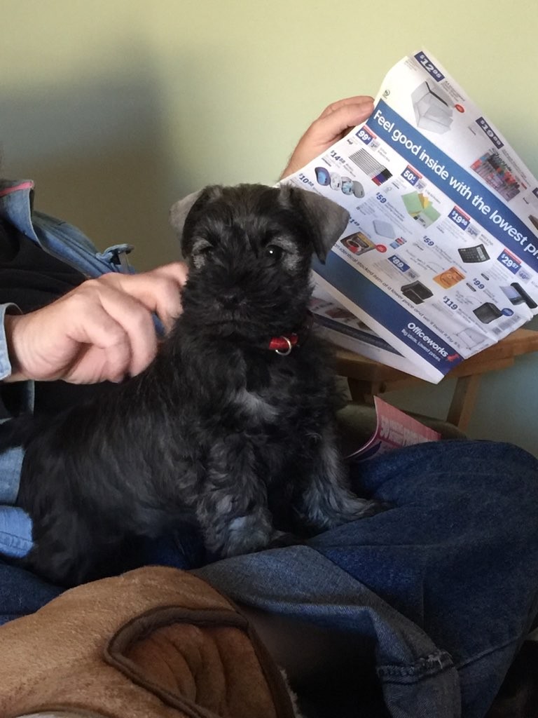 My boy is a mini Schnauzer. I’ll have to find a more recent photo, that one was the day he came home, just on two years ago. He tells me he is now a big dog.