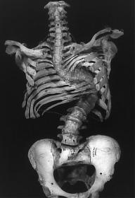 Second, the Richard skeleton, the way it is laid out, as an anthropological specimen, just doesn't look like anything in nature. No one with scoliosis has a spine that juts out, then becomes straight again, although from pictures I've seen, some people who have had fractured vertebrae, and been lucky enough not to get spinal cord damage, sometime get a funny kink in the spine, that looks like scoliosis at first glance, but isn't. The jut in that skeleton is way too pronounced to be the result of that, either, though.
