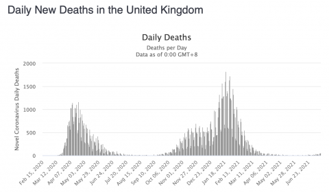 As of this morning, cases are up bigly in the UK but deaths are not. If that trend holds, it is a positive enough scenario and shows that despite Delta being more contagious and able to infect vaccinated people, the vaccination campaigns have succeeded in preventing outright death (remember, the populations most at risk are probably also the most vaccinated). If deaths in the UK do spike bigly, well, it was nice knowing all of you and arguing with you about Chapman TOD all these years.