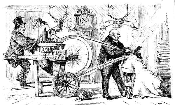 If you look very very closely Superintendent Swanson is holding on to a metal pin. This is attached to a very fine wire (you can just see the blur as the wire moves) which is attached to the following device. As you can see the photographer in the illustration is just about to attach a similar wire to a subject. The assistant pedals the device, ensuring tension at all times.