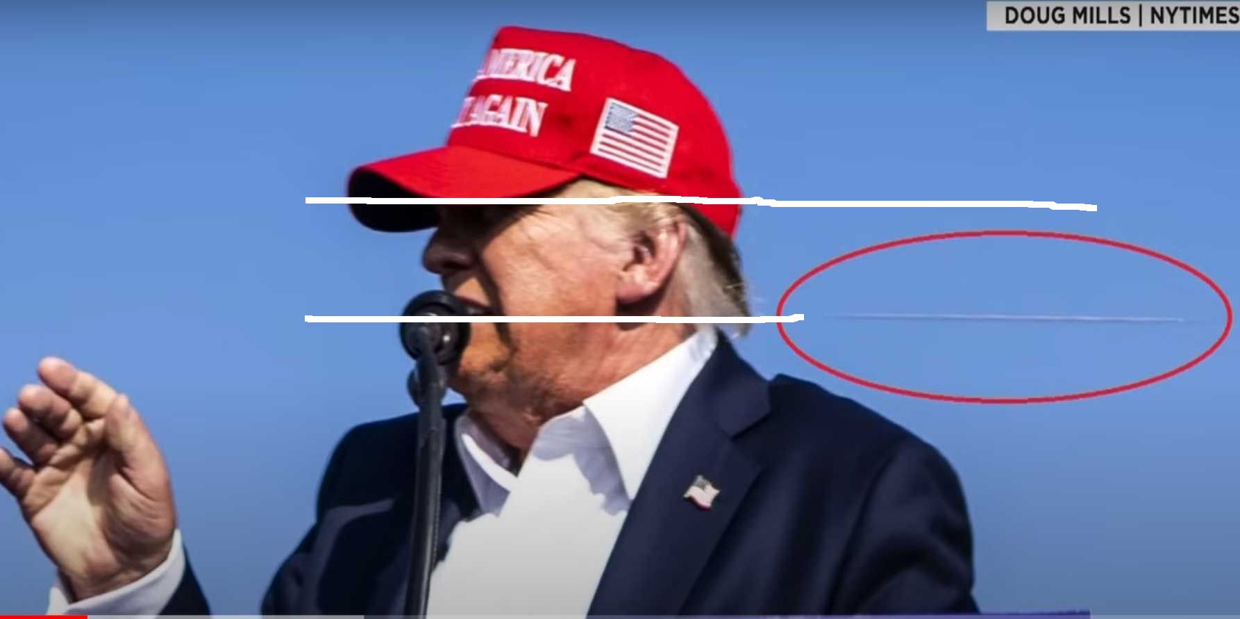 This is purported to be the trail of the bullet that hit the top of Trump's right ear.