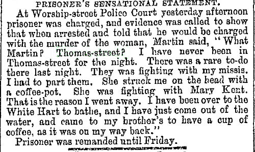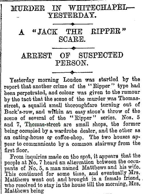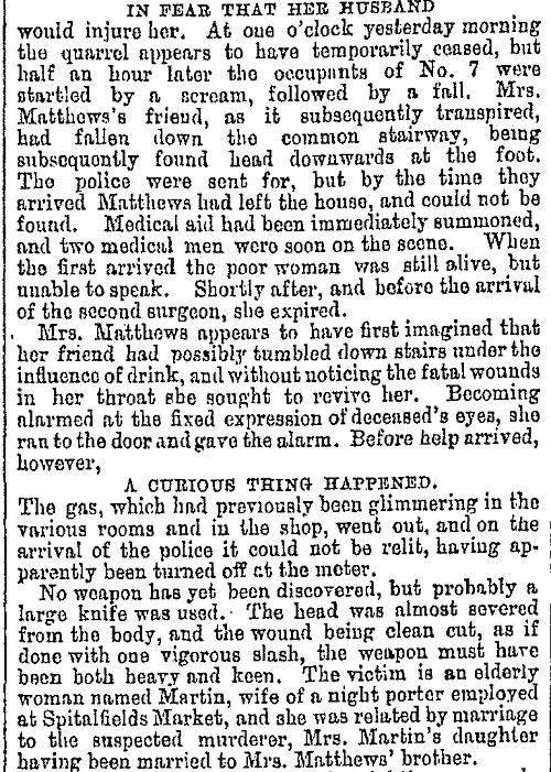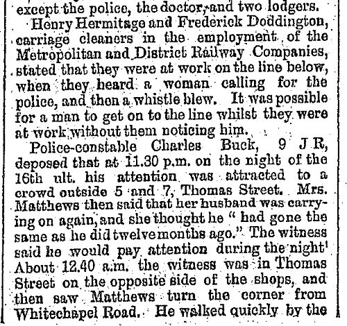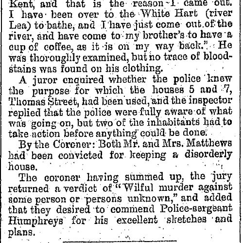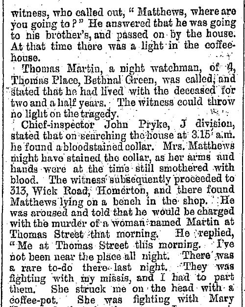 Does anyone know if the case of George Henry Matthews, accused of cutting the throat of Marie Martin at 5 Thomas Street Whitechapel in November 1894 been discussed on the boards before? I can't find any archived discussion but I'm aware that doesn't always mean something hasn't been mentioned before.